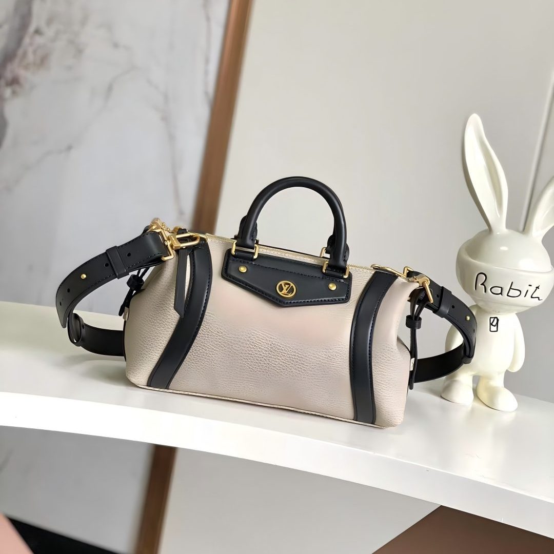 The LV Biker pouch, which made its debut at the Spring/Summer 2025 show, is a pixelated grained sheepskin leather interpretation of Nicolas Ghesqière’s vision of softness, with smooth cowhide trims and LV Circle sequins. The leather shoulder strap makes it comfortable to carry over the shoulder or across the body, while the side straps extend the shape of the bag, a subtle nod to the brand’s box-making heritage.