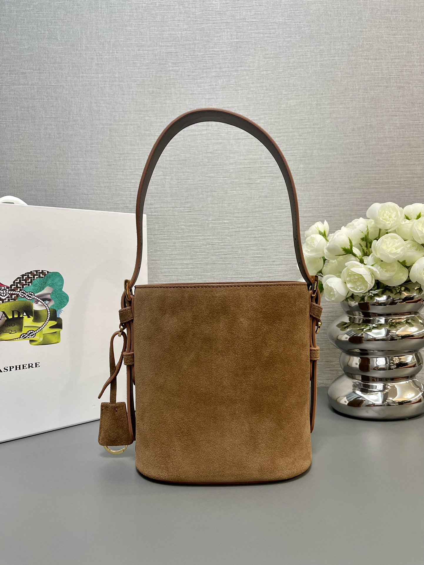 Deerskin Small This flexible and easy to carry bucket bag has a minimalist design and is made of soft suede. Shoulder strap is adjustable, inside with imported sheepskin, answer the amount of space, the effect of the upper body and fashion trend, winter must have, worth having!