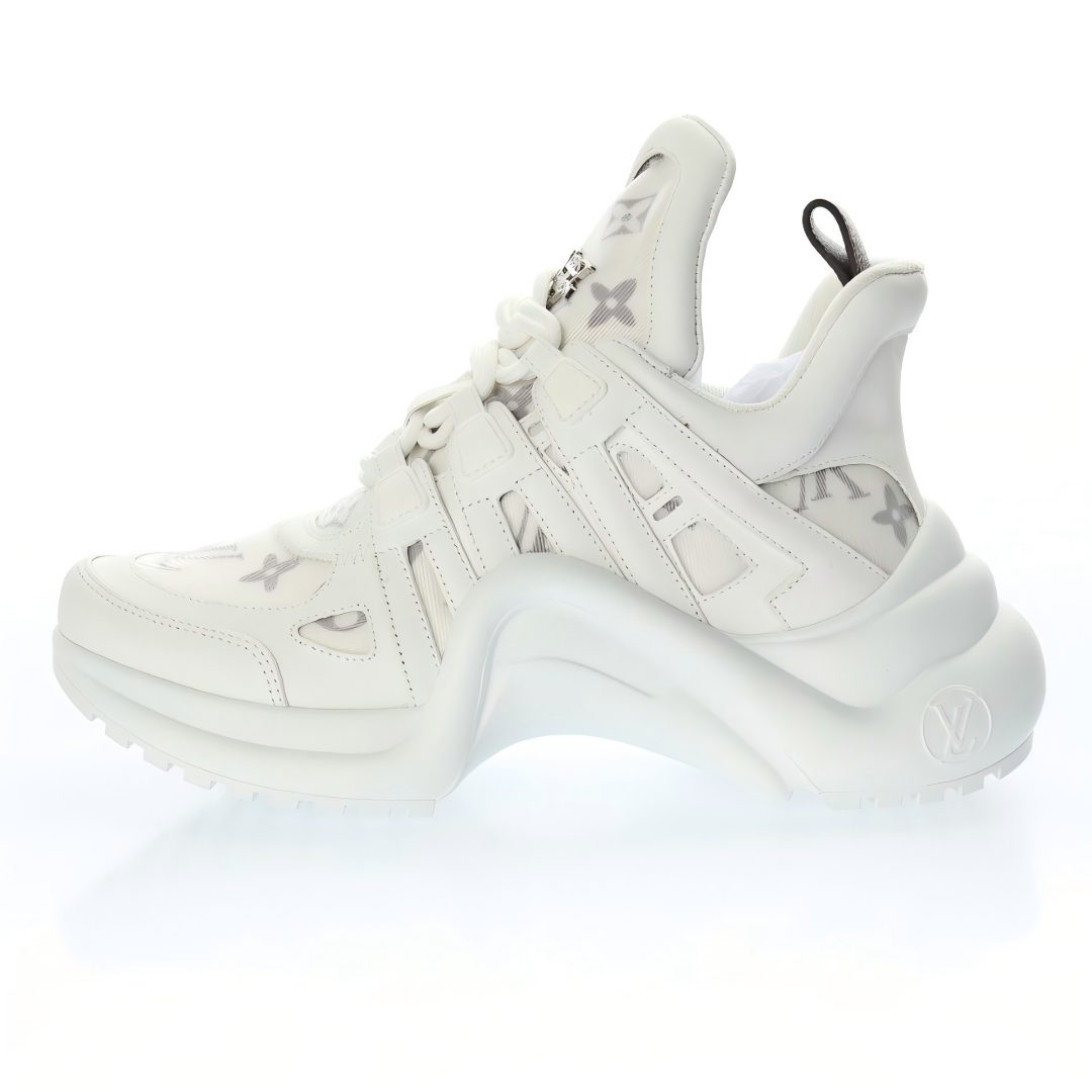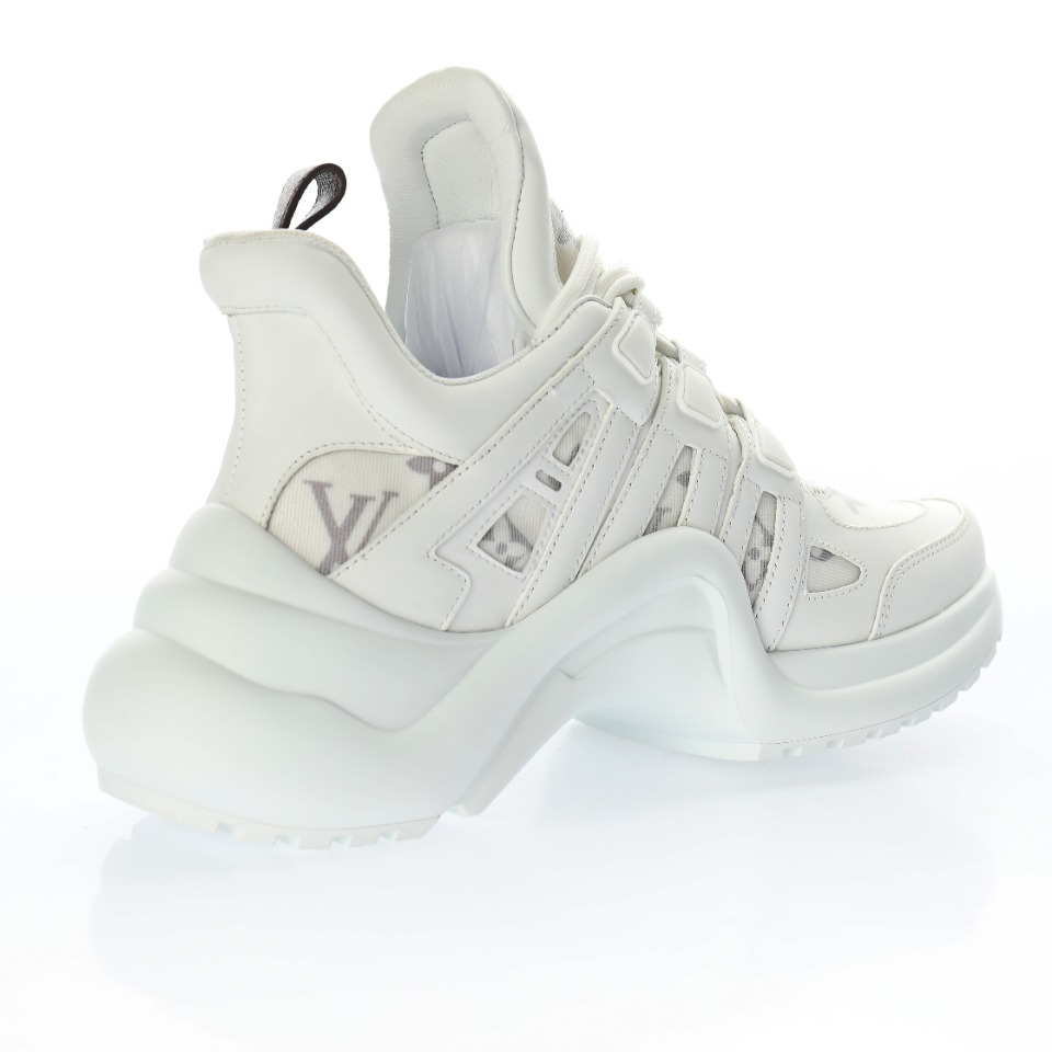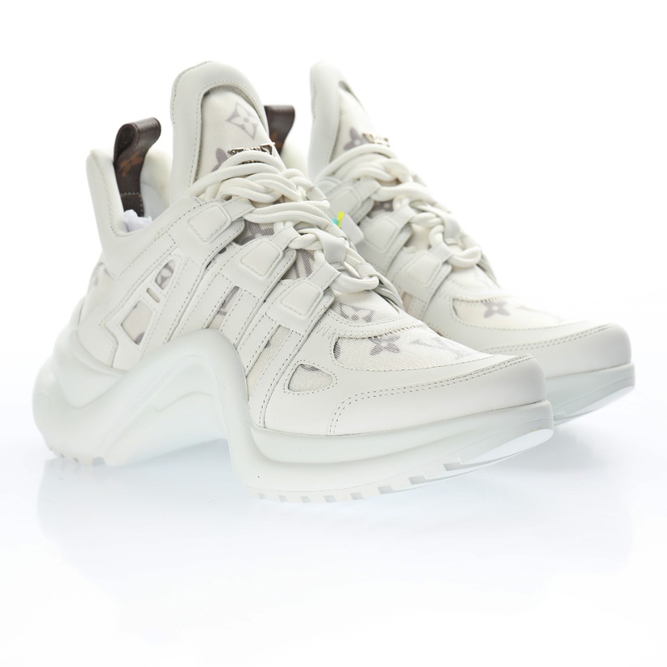 5D effect gift box and complete set of original accessories packaging materials # Supports NFC sensing official website redirection # Pear-shaped super soft sandblasted paper balls + detailed manufacturing of exquisite products # Uses top-grain calfskin leather decorative pieces # Independently developed TPU rebound midsole # Combined TPR wear-resistant outsole # Super soft leather inner foot pads LV genuine leather two-tone shock-absorbing mesh sports bow-shaped dance retro dad sneakers “Leather white mesh woven grey embossed LOGO”